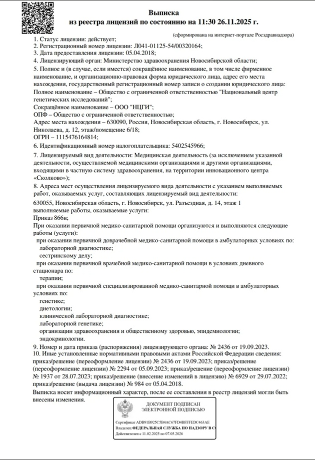 Лицензии и сертификаты ДНК лаборатории